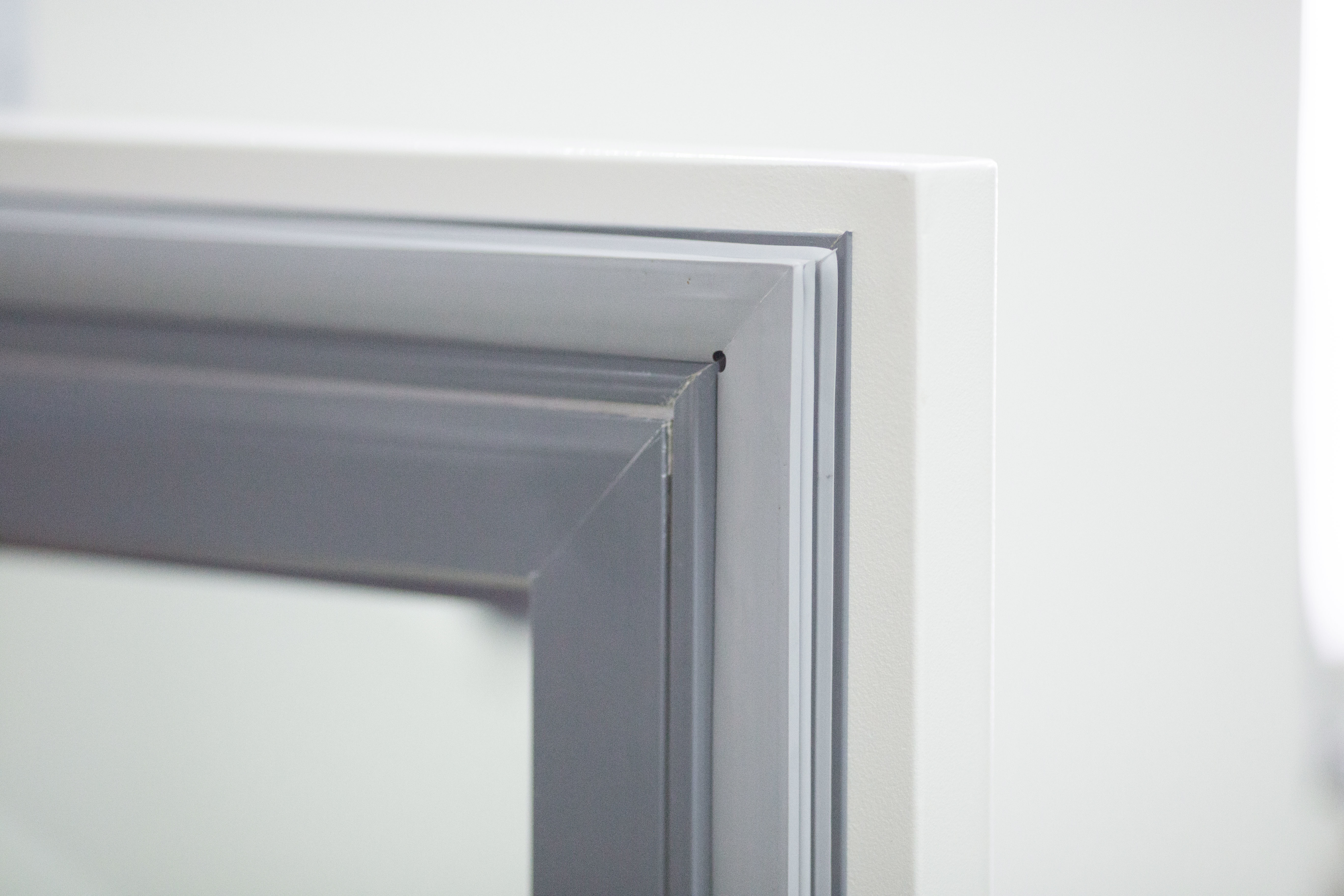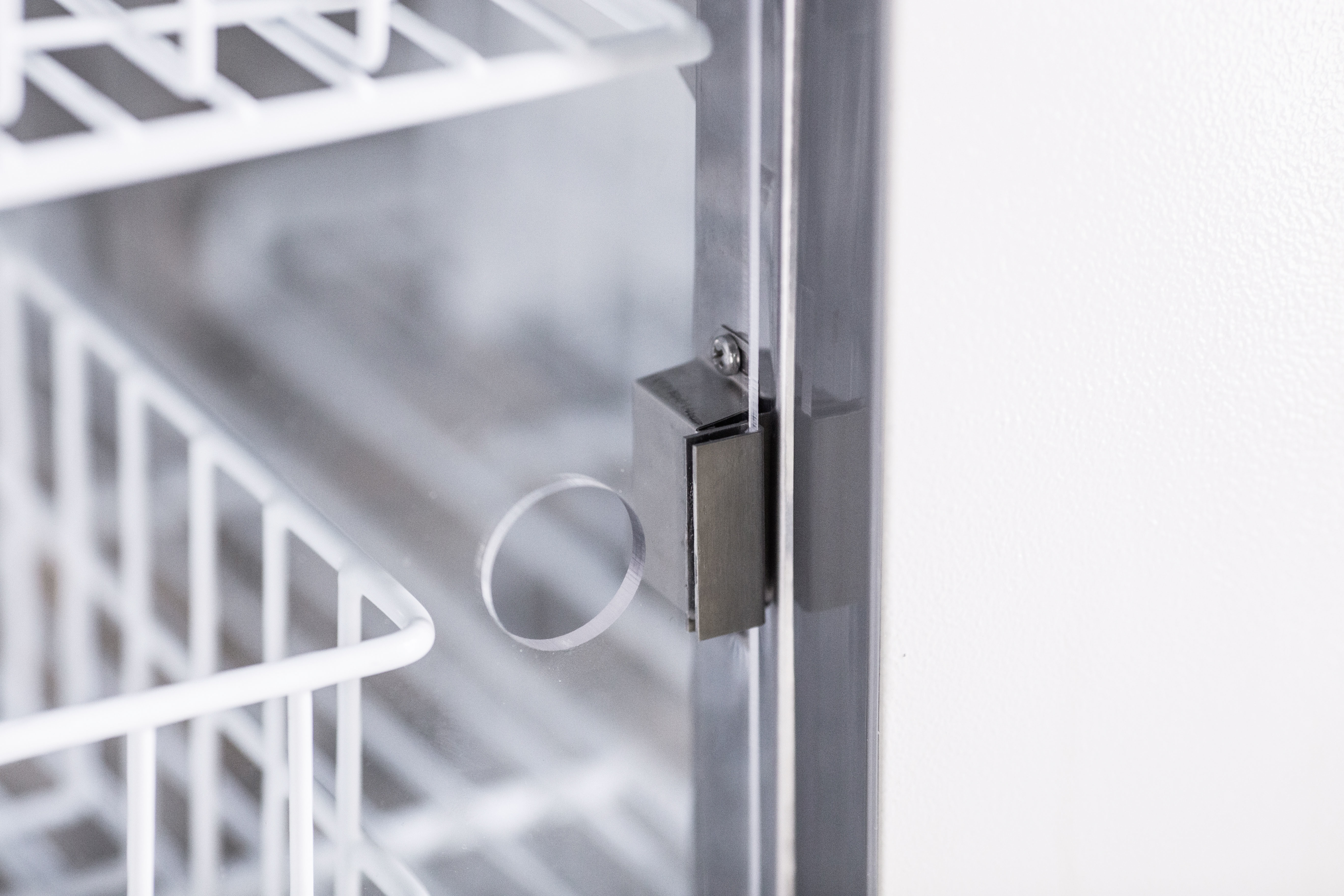 Porte en verre trempé à trois couches avec chauffage pour éviter la condensation.